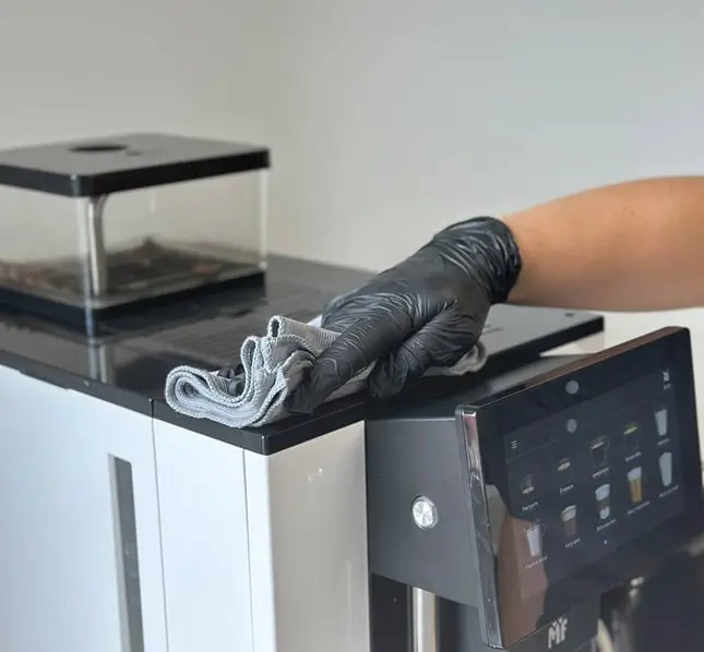 Офіс — це різні матеріали в одному просторі: ламінат і паркет, ковролін і плитка, скло й алюміній, матові панелі й глянець. Тут потрібні не «сильніші засоби», а коректні. Для скла — осмос-вода, яка не залишає мінеральних слідів; для делікатних поверхонь — нейтральні pH-засоби; для санвузлів — професійні склади з антинальотним ефектом; для ковроліну — екстракторна хімчистка з контрольованою вологістю, щоб не «законсервувати» вологу в підоснові. Скляні перегородки в переговорних миємо у два етапи: спочатку знімаємо статичний пил мікрофіброю, потім поліруємо безворсовими серветками — так світло проходить рівномірно, а відбитки не повертаються за годину. У зоні кухні окремо опрацьовуємо стільниці, змішувачі, холодильники (зовнішні поверхні), мікрохвильові печі та кавові апарати — місця, де швидше за все накопичуються сліди жиру й наліт.