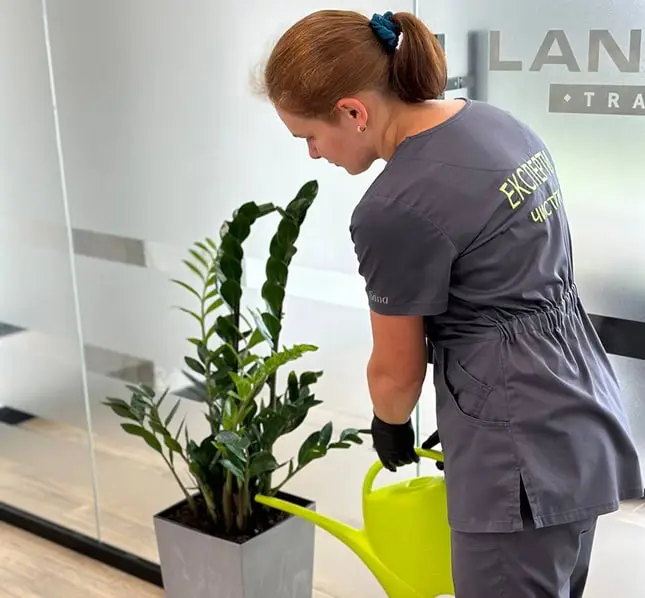 Найчастіше офісу потрібні два рівні послуги. Регулярне підтримувальне прибирання — короткі, але часті сесії, які тримають поверхні в стабільному стані (сухе і вологе прибирання підлог, сміття, пил на горизонталях, кухня, санвузли). Генеральне — – рази на місяць: детальне пропилосошування важкодоступних зон, миття плінтусів, окремо — глибоке очищення швів плитки, полірування скла, точкове виведення складних плям та арома-нейтралізація. Якщо в офісі є ковролін — плануємо екстракторну чистку за окремим графіком, а для крісел і м’яких меблів — швидку хімчистку у неробочі години. Для бізнес-центрів або компаній з гнучким графіком роботи ми зазвичай об’єднуємо ці рівні: щоденні –-хвилинні «підтримки» та один розширений виїзд на місяць. Так бюджет витрачається туди, де це дає видимий ефект: ресепшн, скло, кухня, санвузли — саме ті точки, за якими відвідувачі оцінюють чистоту.
